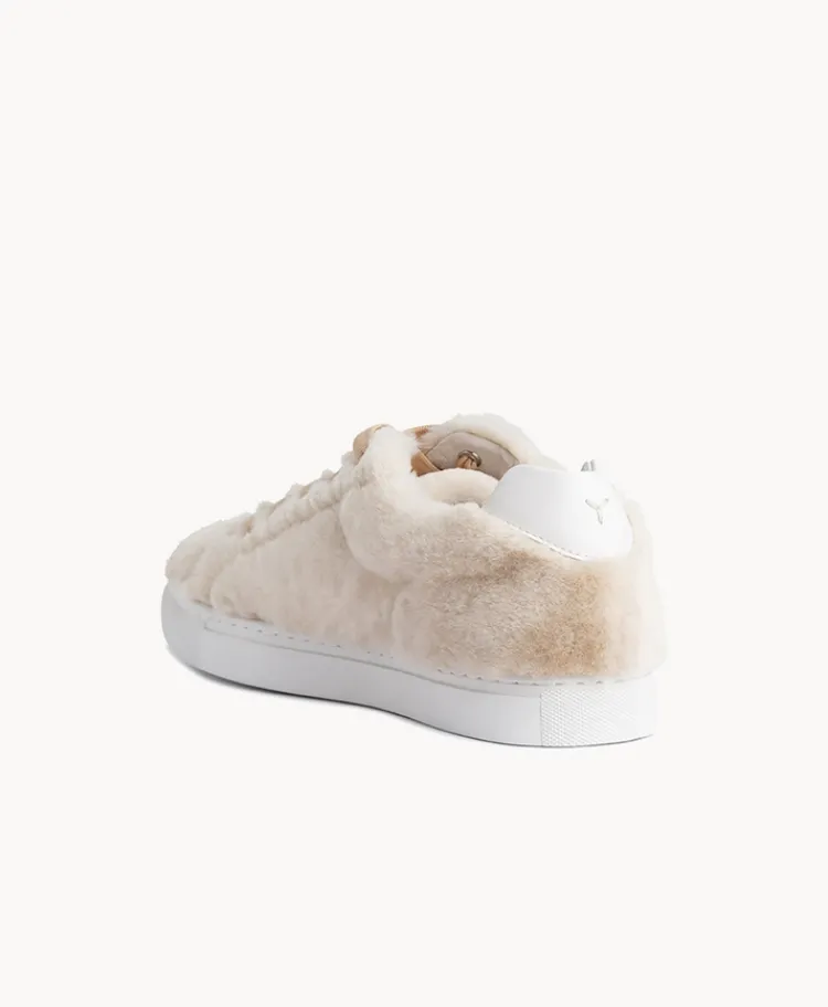 Step into this cloud-like style and make an instant impact, crafted from plush real shearling. Featuring ribbon lace up detailing and Bloom Sustainable footbeds for maximum comfort. A donation from every full price pair of sneakers sold goes to support the Young Hearts Project.