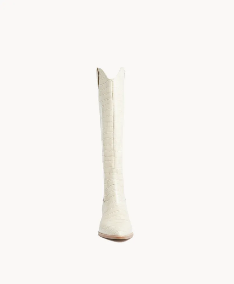 Taking a Western silhouette and refreshing it for a contemporary gaze, meet the Blaine knee high boot. Set on a low block heel for practicality, these boots are a statement worth making.