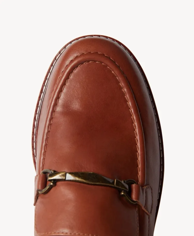 The Espirit loafer is elevated with a higher stacked block heel, adding to her timeless silhouette. Featuring a rustic buckle on the upper, pair with a midi skirt and a knit sweater for a chic, everyday ensemble.