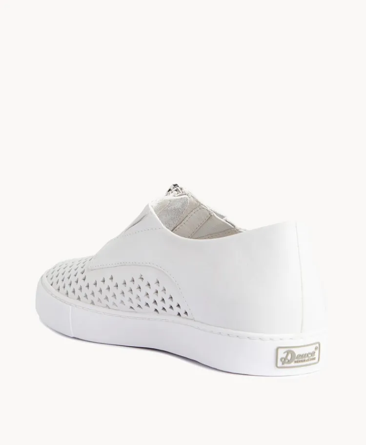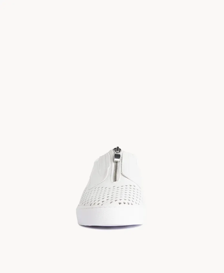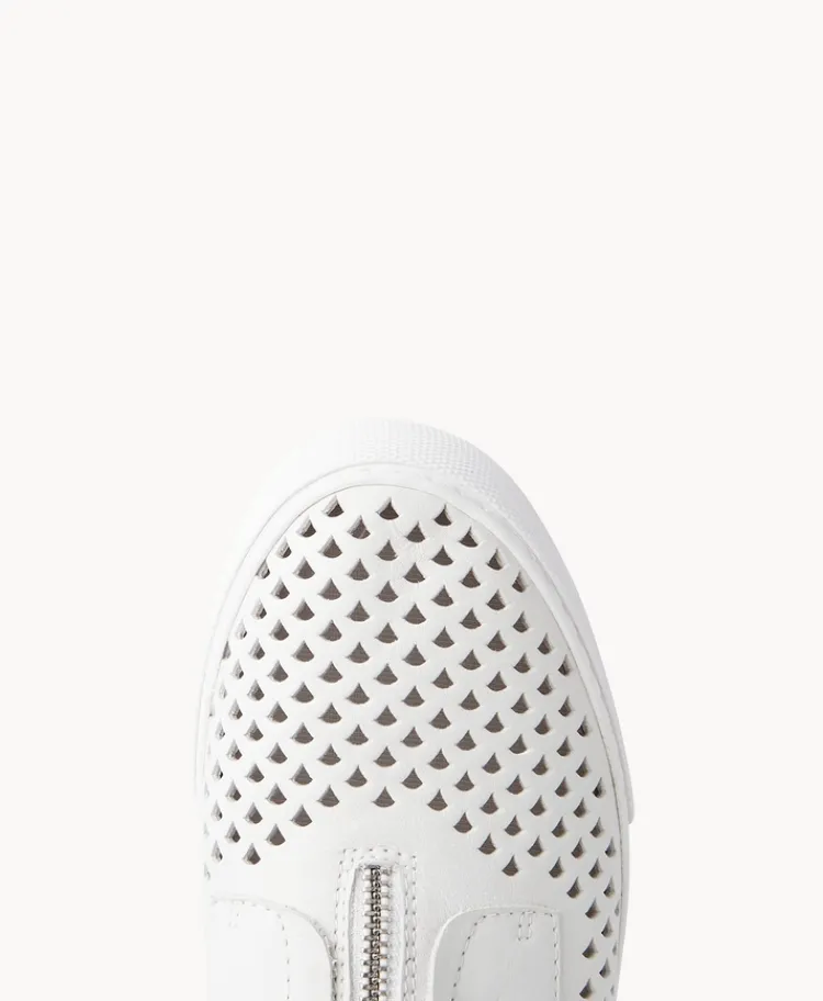 Meet Ireland. The zip hardware and perforated leather come together to elevate this summer sneaker. Wear her to the beach paired with denim for an effortless look.
