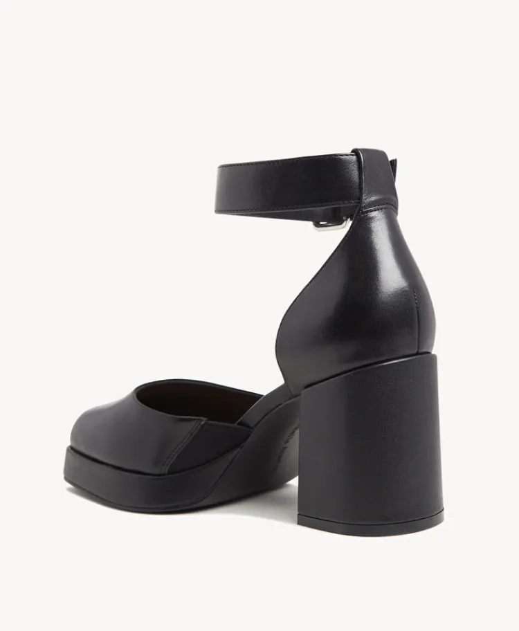 Set on a platform with a closed toe and chunky heel, Linda features a grunge inspired buckle giving her a contemporary flair. Pair her with a skirt or pants for a contemporary yet edgy look.