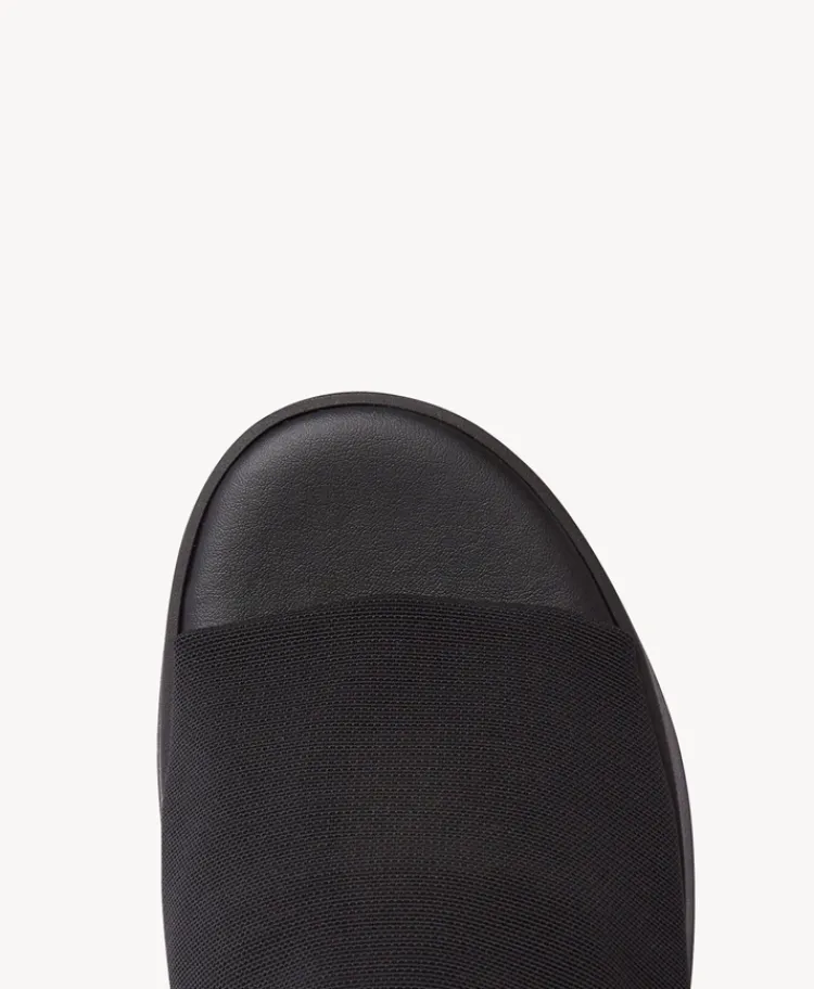 Chunky yet minimal, Lotti is a monochrome platform slide featuring a moulded foam sole and wide fabric strap upper. A day to night style that brings the heat.