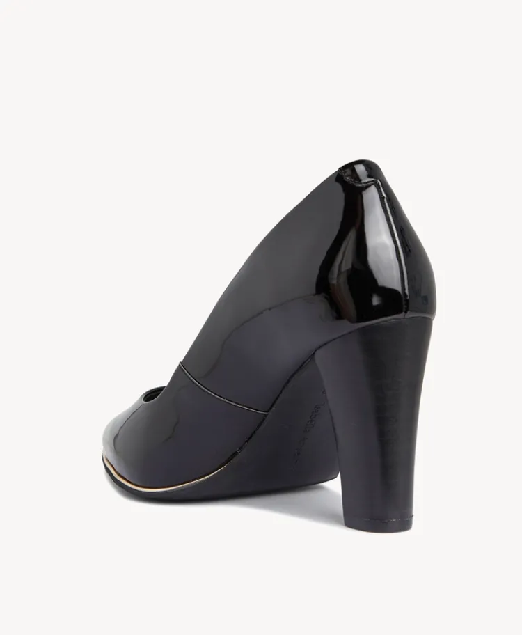 One of our best selling styles, these heels have an elegant almond toe, trim detailing and a wearable block heel. Made from sleek patent, and leather lined, they’re popular for a reason.