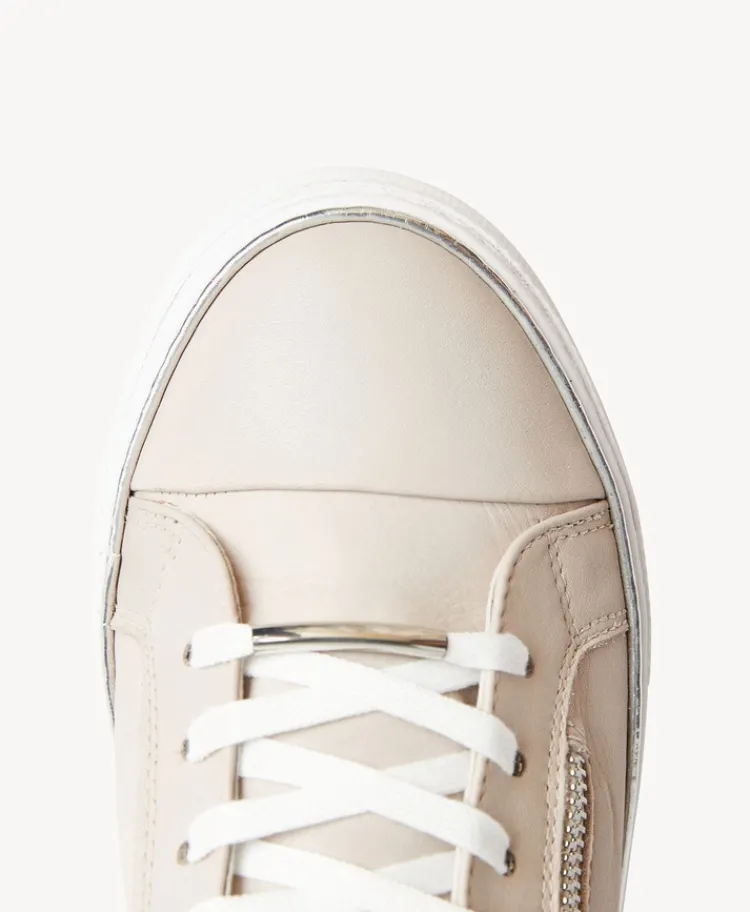Our Payson sneaker is the ideal choice for endless styling options. Set on a platform with a sleek design and gold details, she features a zipper for easy wearing and is wide fit style. Elevated enough to wear to dinner or dress her down with denim.