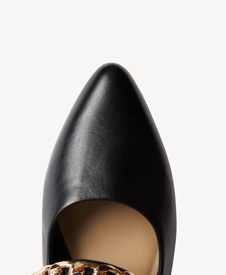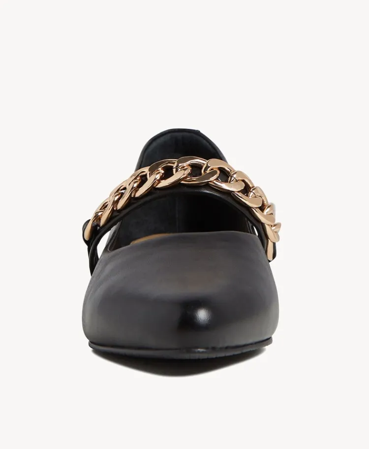 Elevate your evening ensemble with our Whippet flat. This refined Mary Jane shoe features a sleek pointed toe and her strap is reimagined with pleated gold-tone detailing. She pairs effortlessly with cocktail dresses and tailored fits.