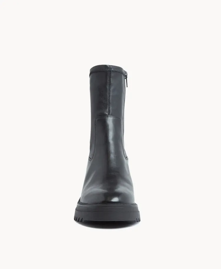 A refined silhouette elevates the simple nature of our Bing ankle boot. With a leather upper and synthetic stretch sock like ankle fit. Grounded on a rubber outsole, these ankle boots were designed for all weather wear.