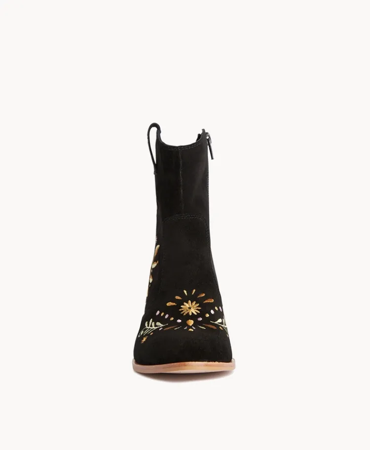 The beautiful floral embellishment on our Bounty ankle boot is lovely update to the Western trend that’s everywhere this season. Bounty has a mid-height block heel and embellished pull-tab for ease in and out.