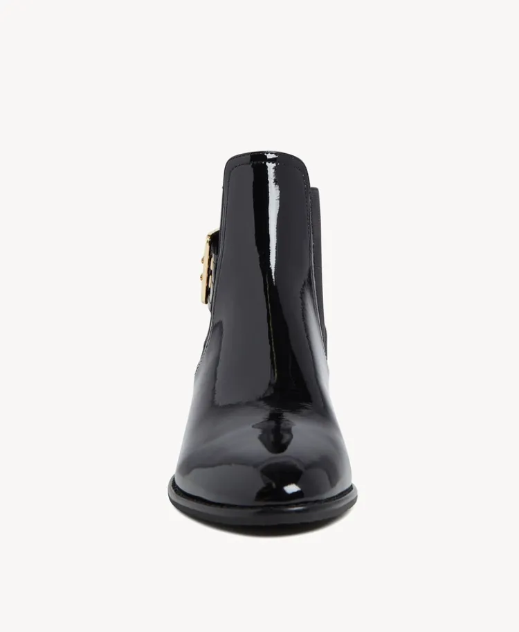 Make a striking impression with our fashion-forward Dalton Chelsea boot, designed with a low-block heel for all-day comfort. Featuring classic side panels for a snug fit, the design is sweetened with a gold-tone buckle detail for added flair. Pair her with cropped black trousers and a tailored blazer for an elegant yet edgy look.