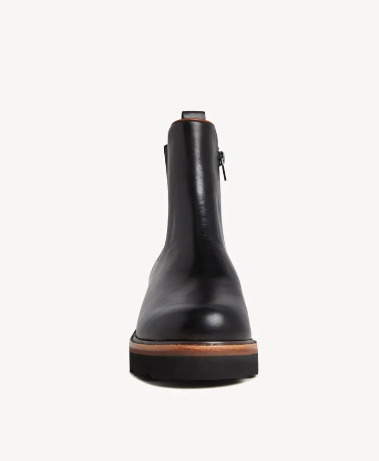 The Echo Chelsea boot is a modern take on a timeless classic. These ankle boots feature elasticated side panels, a round toe and a stacked block heel. Her contrasting seams define the boot’s sleek lines. She can be paired with tailored trousers, flowing skirts, or your favourite denim.