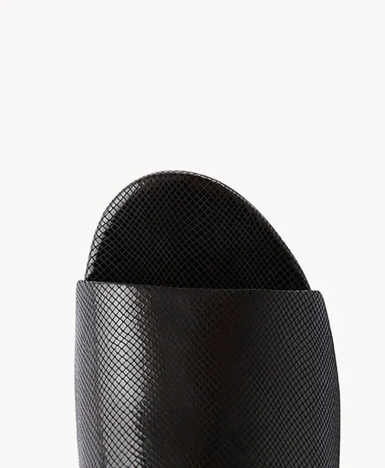 These retro inspired slides just scream to be out all night! Crafted in a metallic reptile print leather, Elektra features a mid height flared heel and pairs perfectly with tailored evening pieces and summery minis.