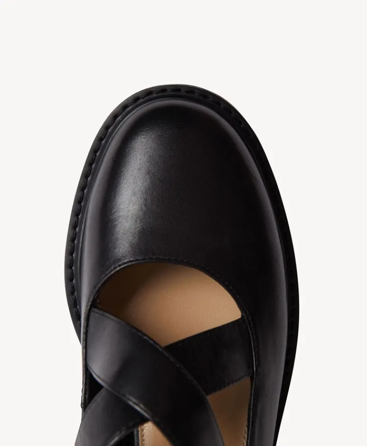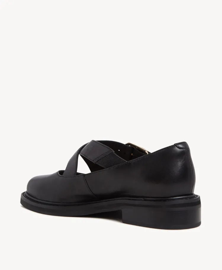 Express is a chic reinterpretation of the classic Mary Jane silhouette. She features criss-cross straps and a gold-tone buckle, adding a touch of luxe to her design. She is perfect for pairing with tailored pants for a polished office look or with jeans for a more casual, everyday vibe.