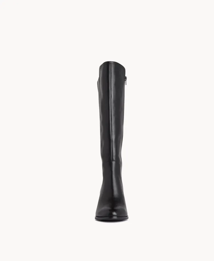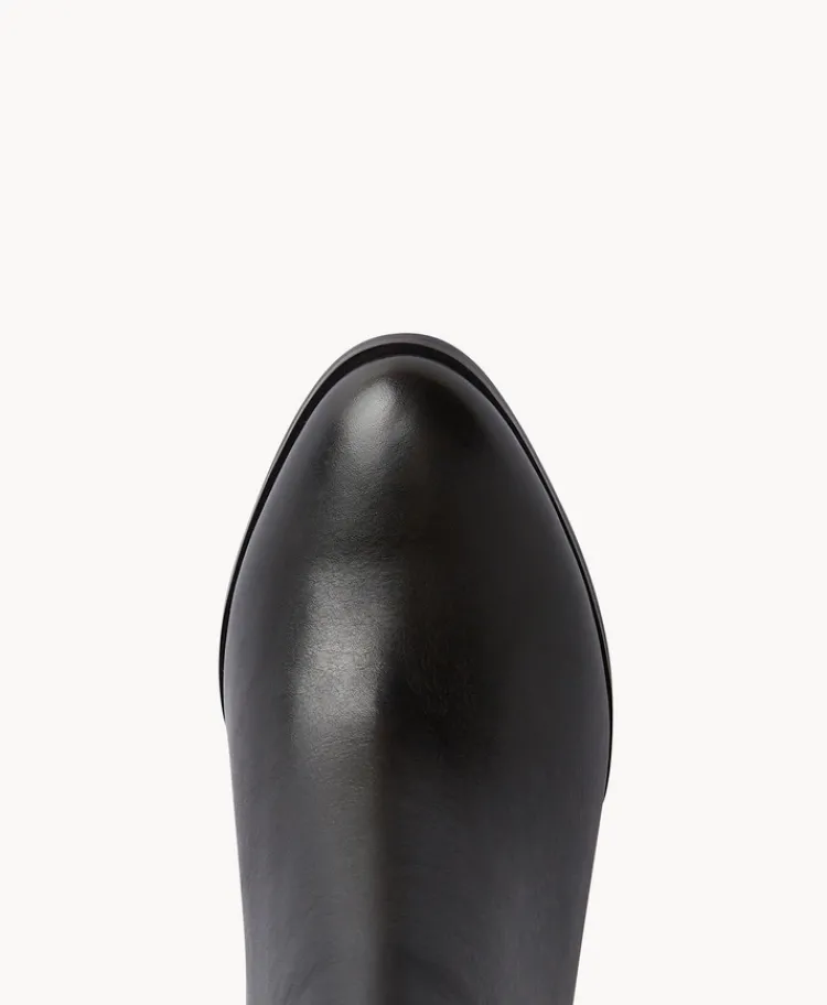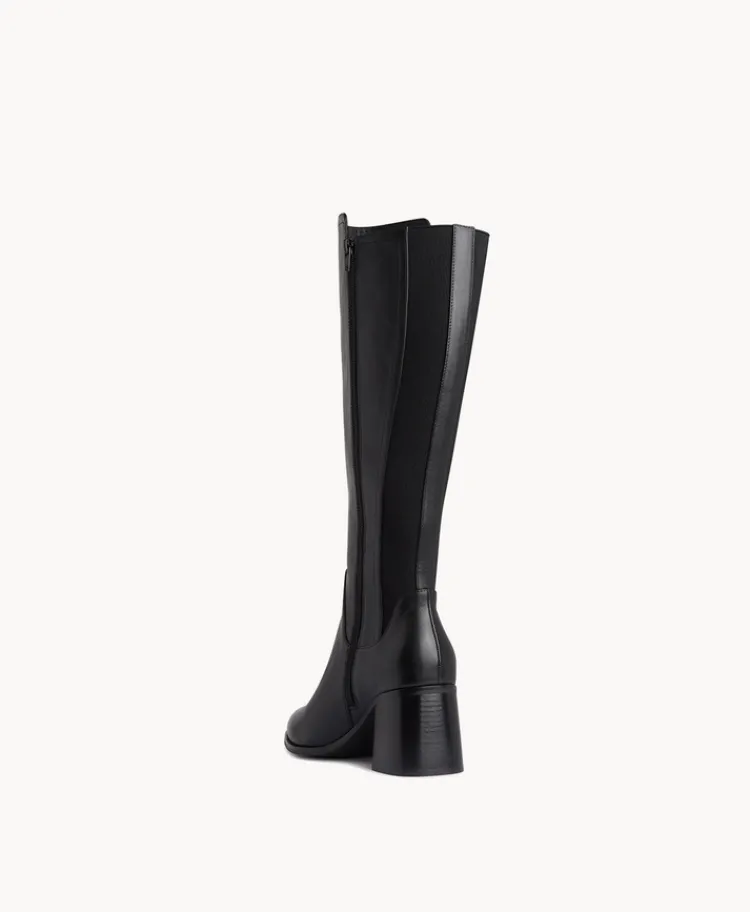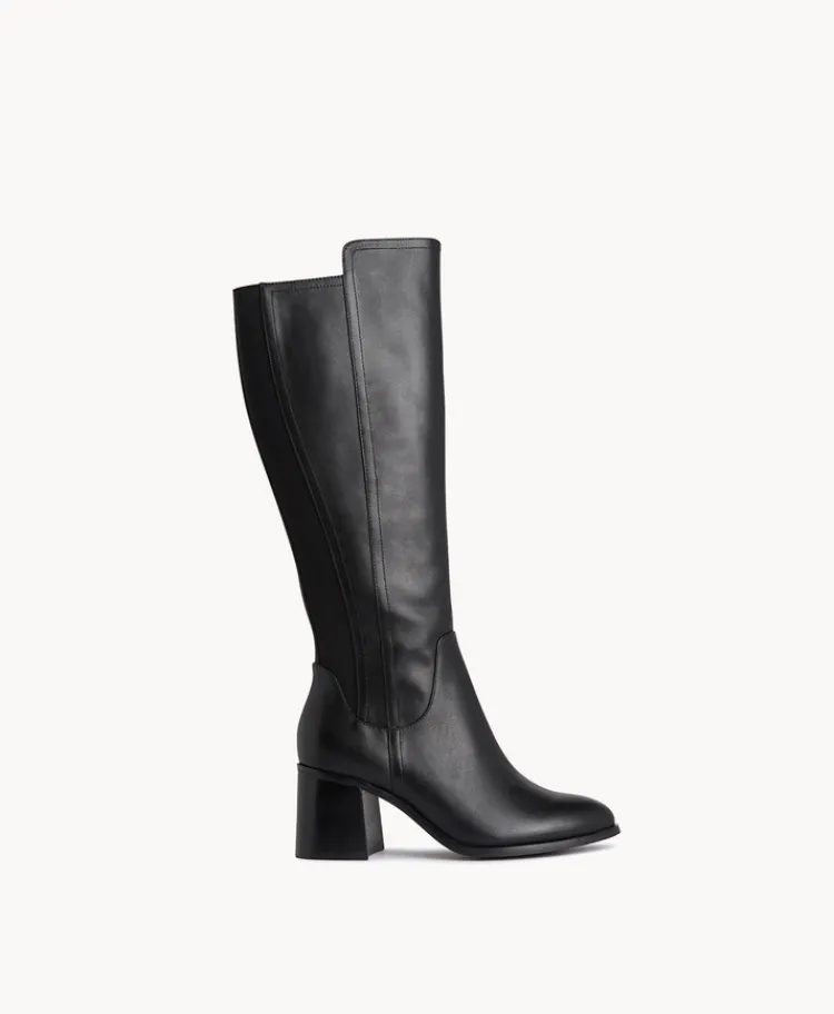 Our Freida boot has wardrobe staple written all over it. The leather upper is complemented with a stretchy, elastic insert designed to accommodate a wider fit. Set on a mid-height block with a softened toe point, try these with denim or a midi skirt.