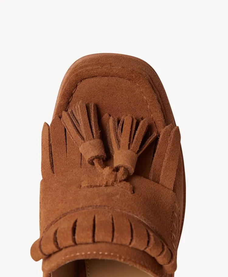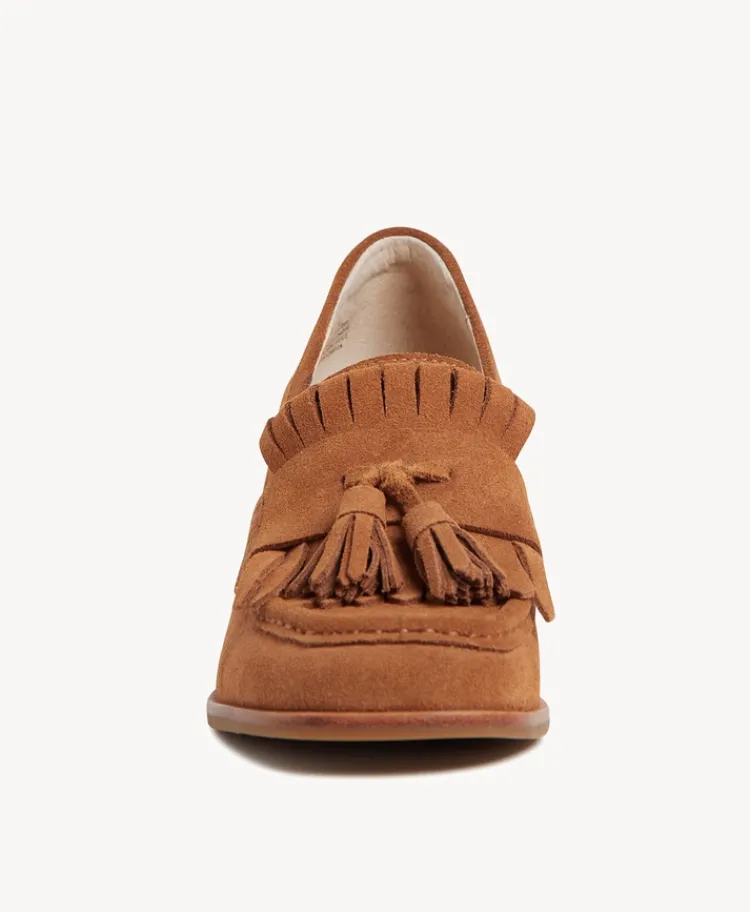 A heeled loafer with tassle is the smartest way to make a style statement for workwear or daywear. Pair with jeans or tailoring to create height yet remain casual.