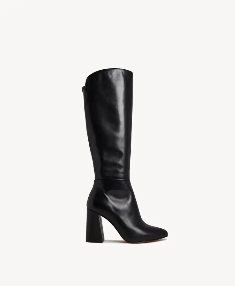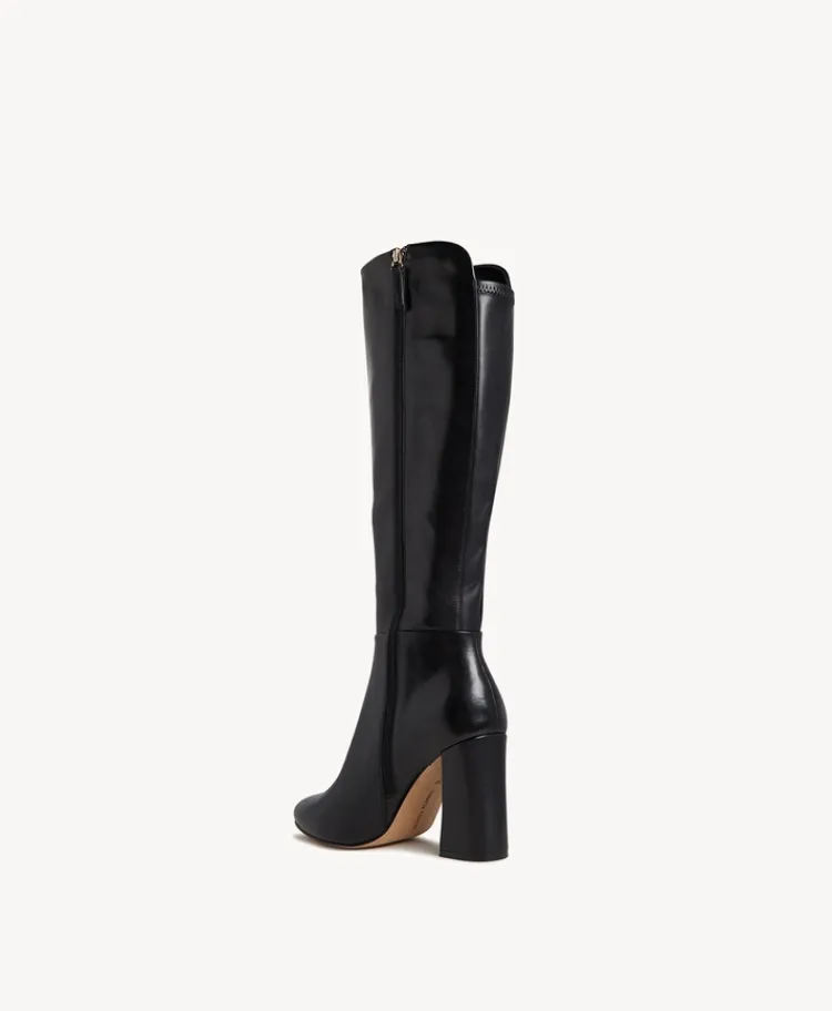 Discover ultimate chic sophistication with our Maeve knee-high boots, featuring a sleek stretch panel at the back for a tailored fit, a pointed toe and a high block heel. Style her with a skirt and tailored blazer for a polished yet sexy outfit.