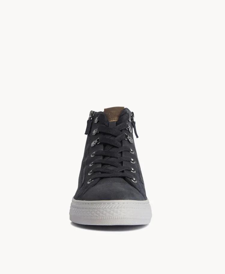 Our Manchester high top sneaker is hand-crafted from quality pressed suede and features double dual zips and gunmetal hiker eyelets. Pair with straight denim for an easy, elevated casual look.