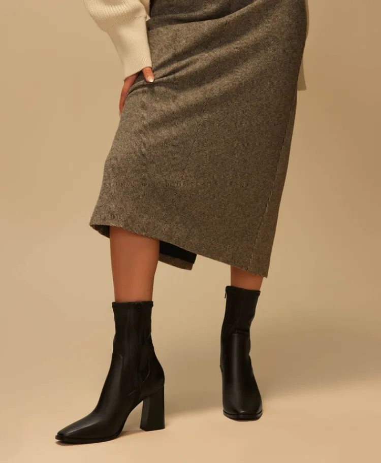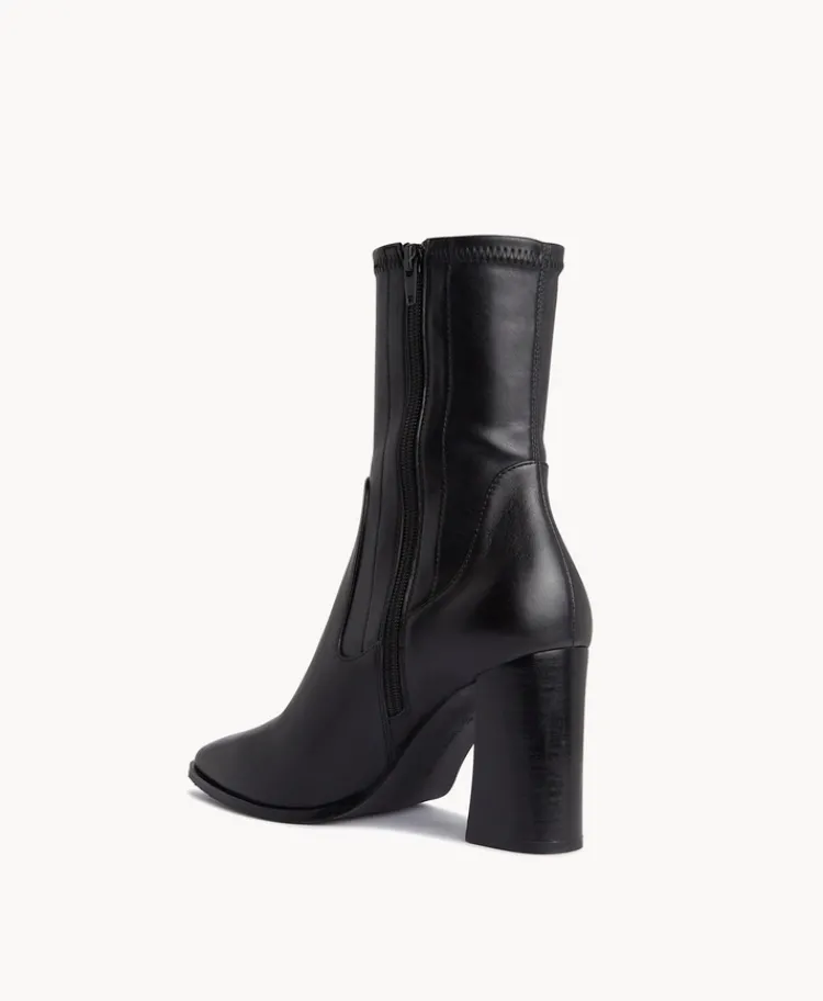 Our ultra covetable Markie ankle boot features a modern square toe, flared heel and synthetic, sock-like stretch fit around the ankle. Super sleek for styling with everything from your favourite denim to chic tailoring.