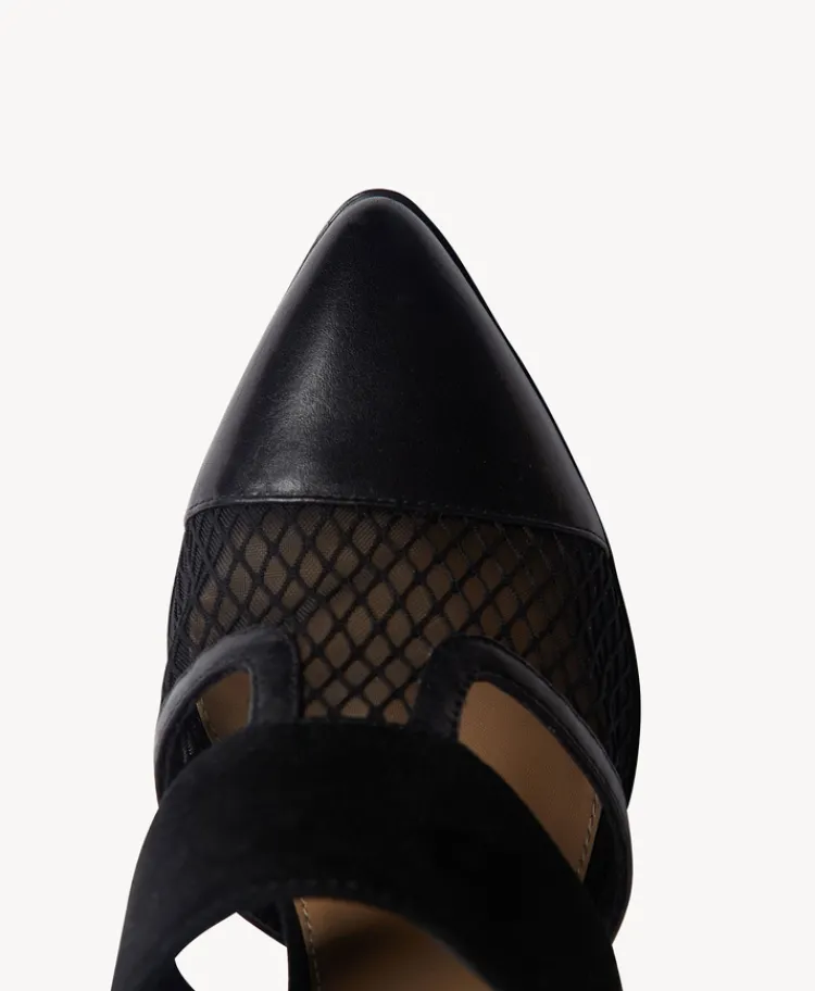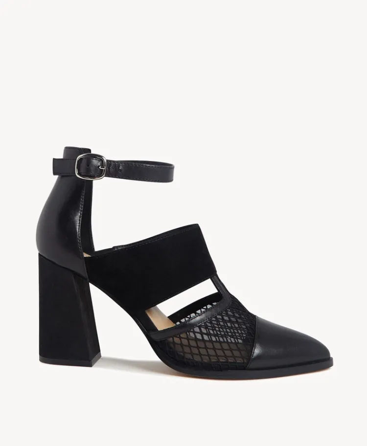 Marlborough features mesh and cut-out detailing for a modern, feminine touch. Her ankle strap, adorned with a sleek silver-tone buckle, adds a refined finish to these stylish heels. Pair her with a tailored dress for an evening out.