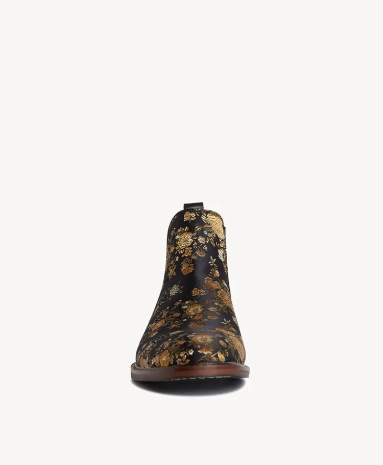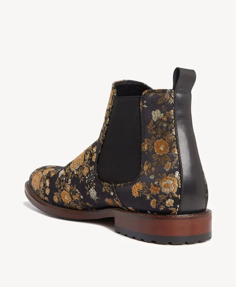 Stand out from the crowd in our Melbourne chelsea boot. A bold embroidered floral upper is premiumly finished with a leather back tab and set on a treaded rubber sole.