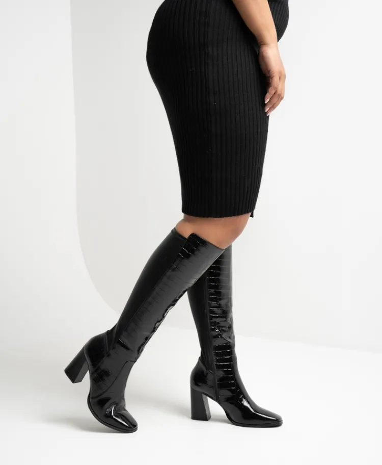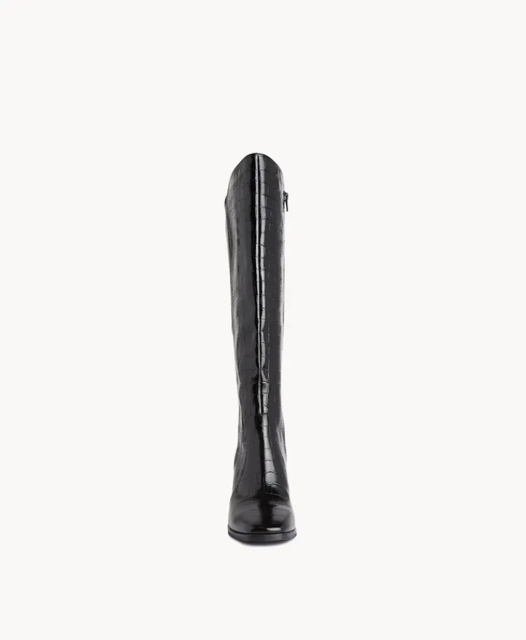 For an overtly feminine style statement, meet the Mica knee high boot. Croc embossed leather and form fitting combine with a synthetic, stretch fabric back panel, these boots were curated with indulgence in mind.
