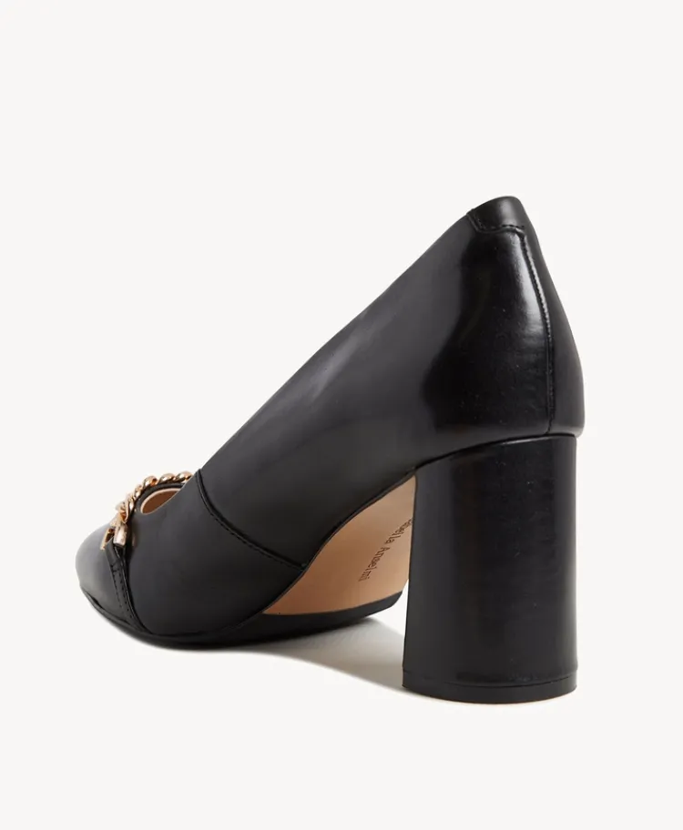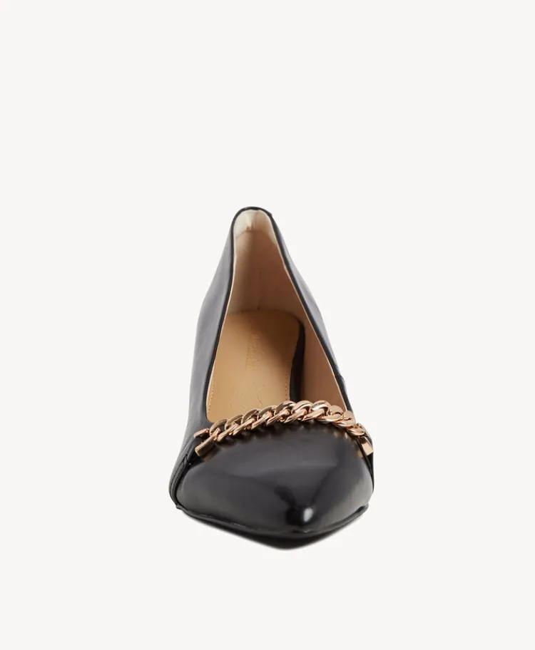 For elevated events and beyond, meet our SamanthaWide heel. Gold chain detailing across her pointed toe add a glamorous touch to this classic style.