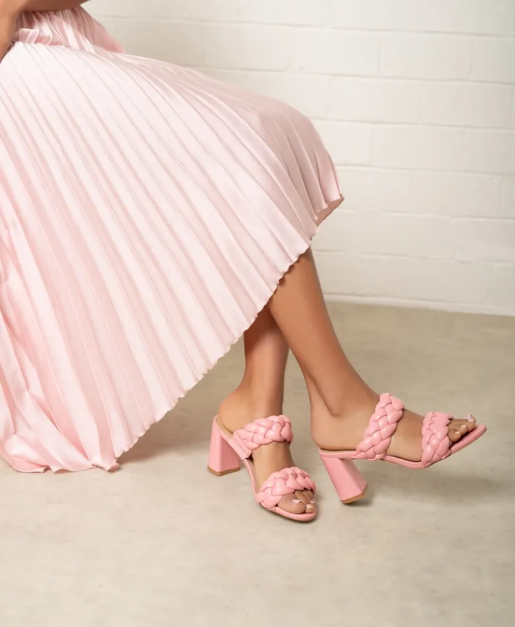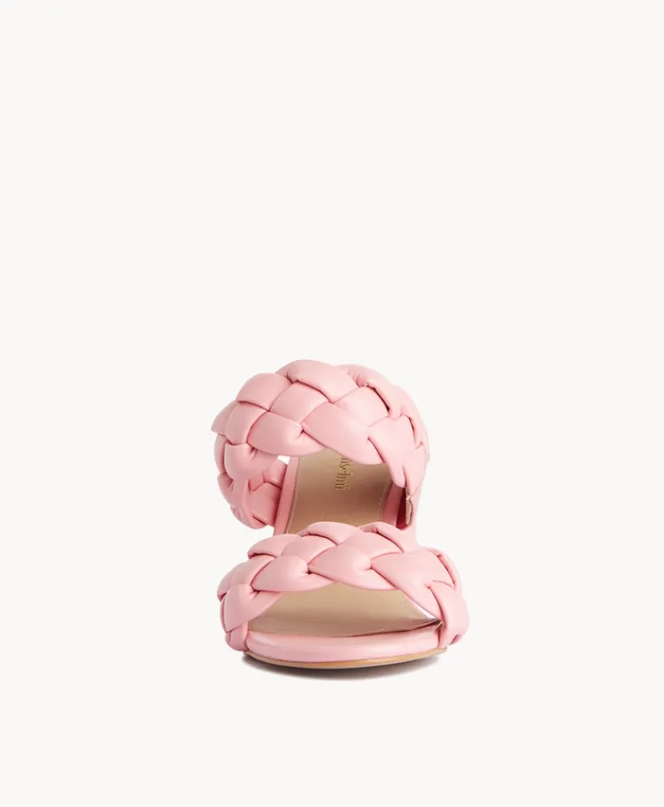 The Scooby heel, with braided non-leather straps and leather lining, makes this mule a summer must-have. Wear anywhere from bars to brunches for a punchy summer look.