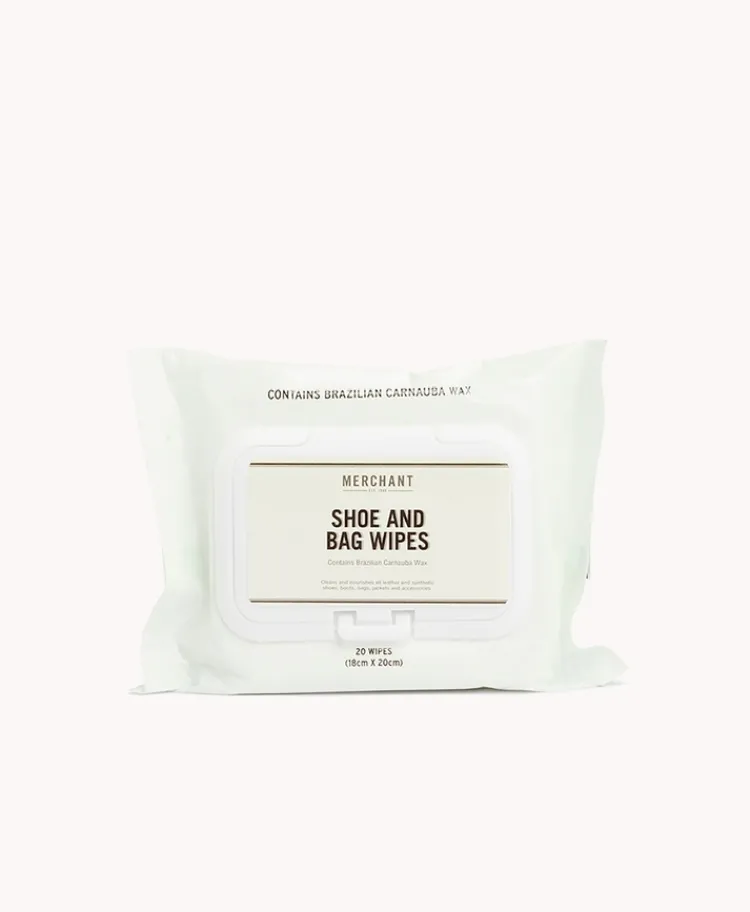 Handy wipes for cleaning on the go, our Merchant 1948 Shoe Wipes clean and nourish all leather and synthetic shoes, boots, bags and accesories. Contains Brazilian Carnauba Wax. Quick and easy, travel friendly and good for your shoes!