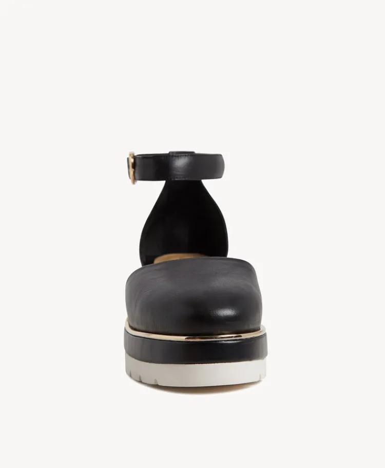 Set on a chunky platform sole, our Tempest sandal is a closed toe style with silver-tone detailing and buckles. Wear her with your favourite pair of jeans or a skirt for a more dressy look.
