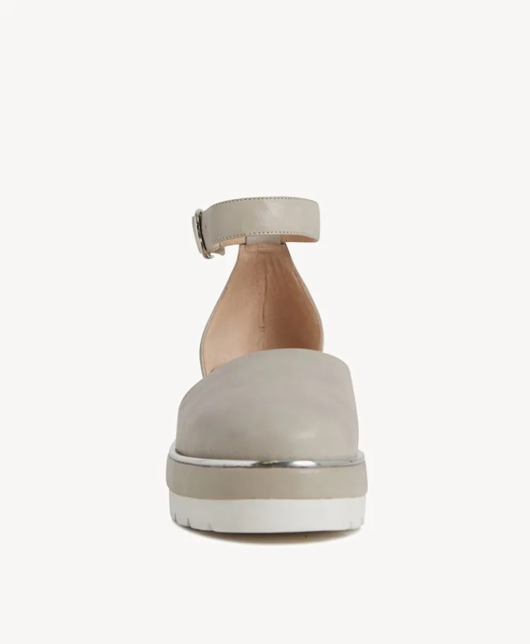 Set on a chunky platform sole, our Tempest sandal is a closed toe style with silver-tone detailing and buckles. Wear her with your favourite pair of jeans or a skirt for a more dressy look.