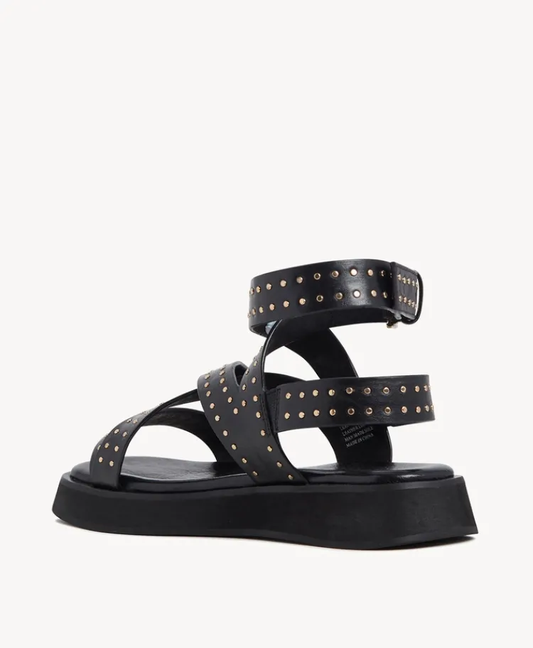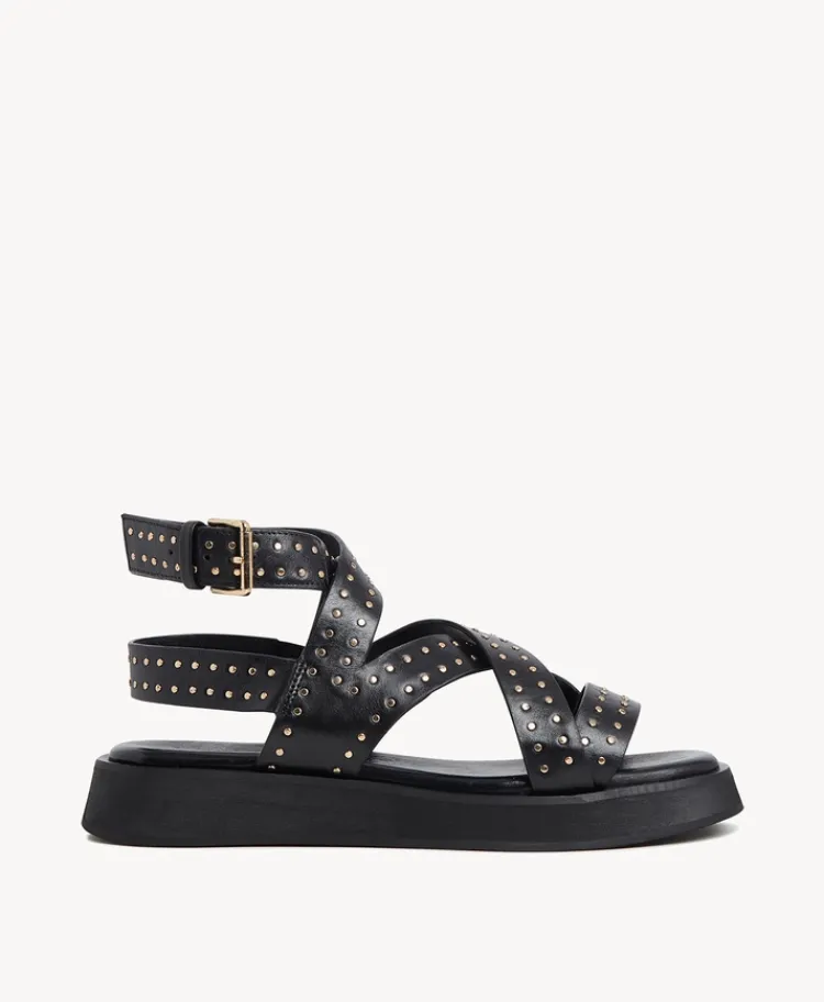 Add an edge to your dresses and skirts with our Teri Stud sandal. Set on a platform with cross over studded straps and gold-tone buckles, this style is a contemporary take on grunge aesthetics.
